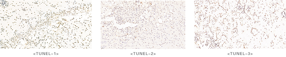 3、滴加Tunel檢測液時,可利用防蒸發膜防止其蒸發影響樣本的生物素標記;配制好的DAB顯色液必須一次性使用完畢,不宜凍存。